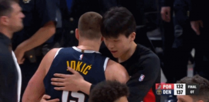 体育娱乐-😁世纪拥抱~约基奇赛后找到了杨瀚森 一个爱的抱抱