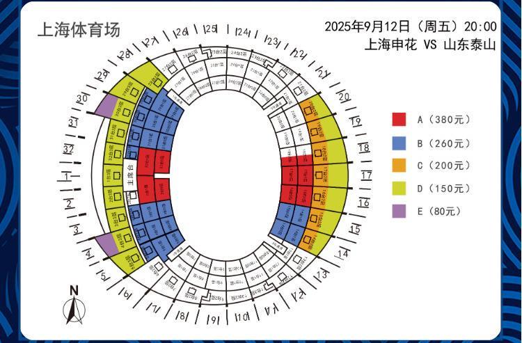 9月12日(星期五)20:00,在2025赛季中超第24轮的一场焦点对决中,上海申花将坐镇主场上海体育场,迎战同为老牌劲旅的山东泰山。9月4日,上海申花足球俱乐部早早发布了这场比赛的票务公告。